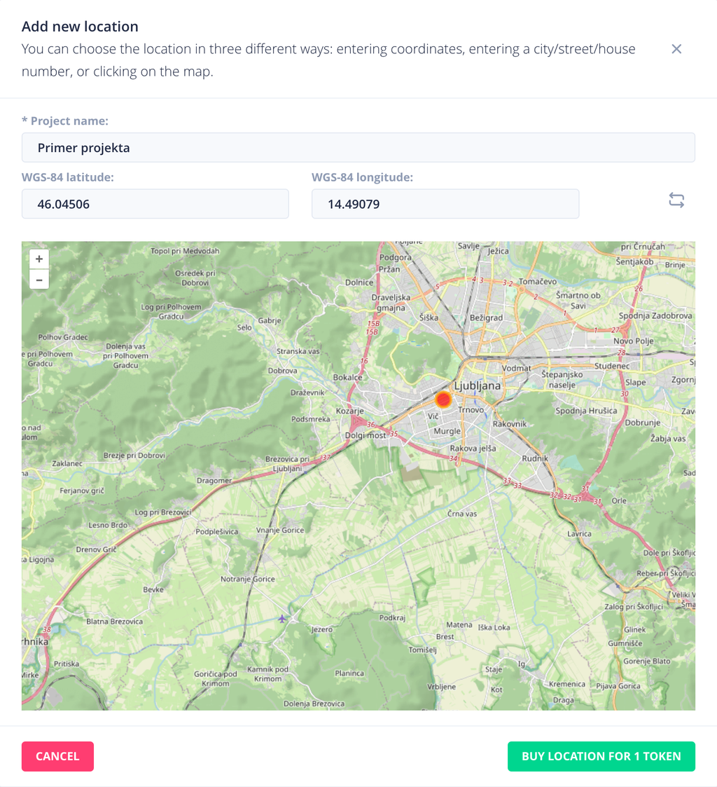 The SKAT application performs a query on the lightning-density high-resolution database of the SCALAR system, which is calculated based on all located lightning strokes in the Republic of Slovenia using the error-ellipse weighting method. A resolution of 100 × 100 m is ensured.